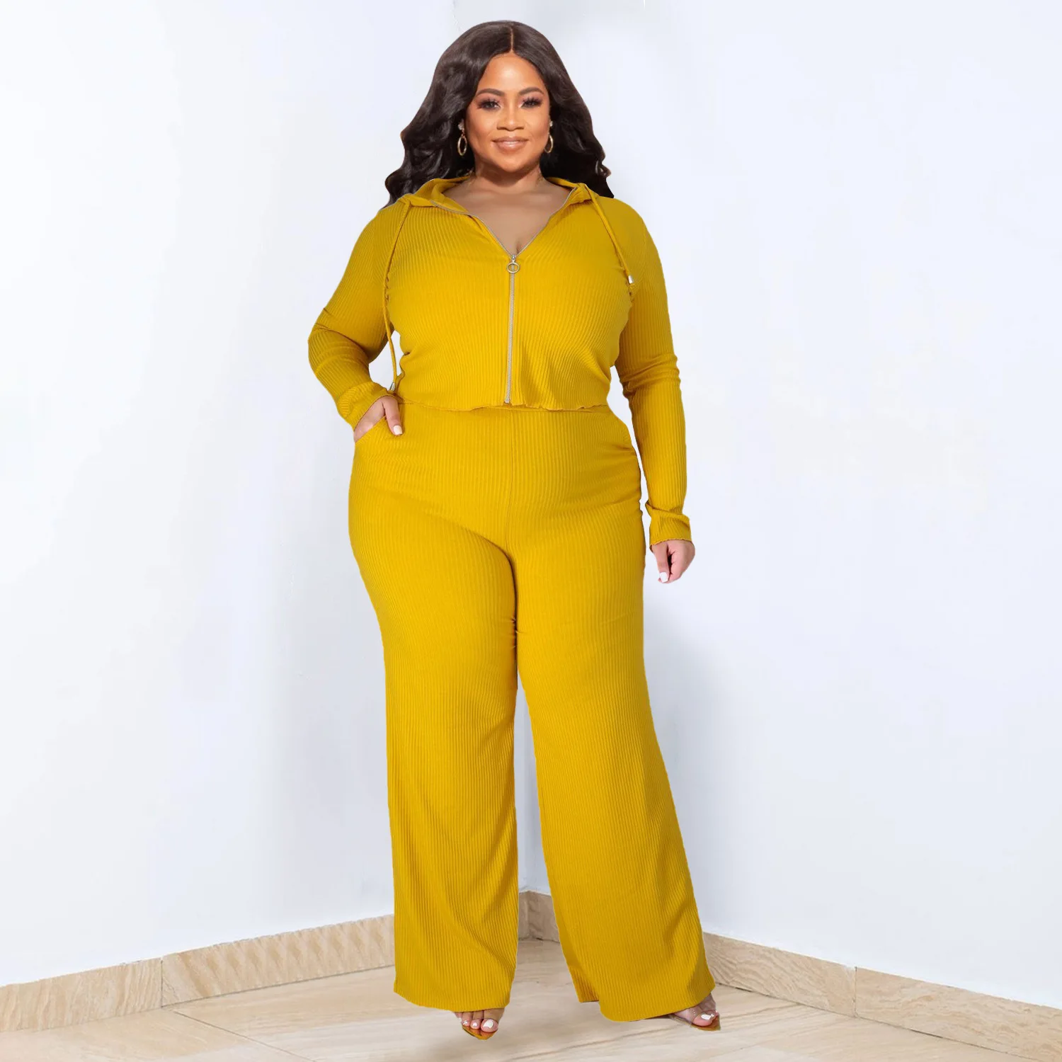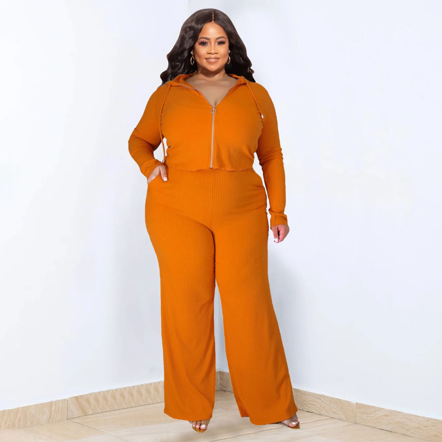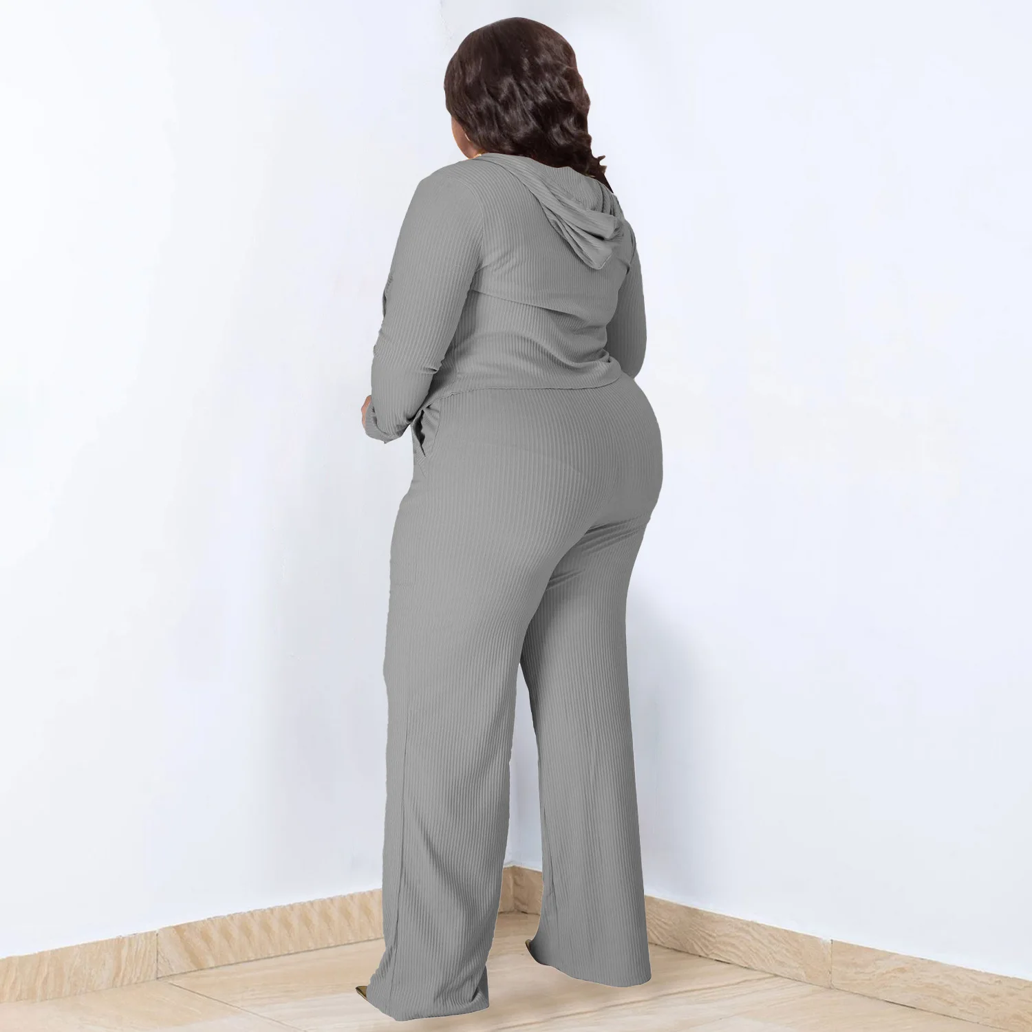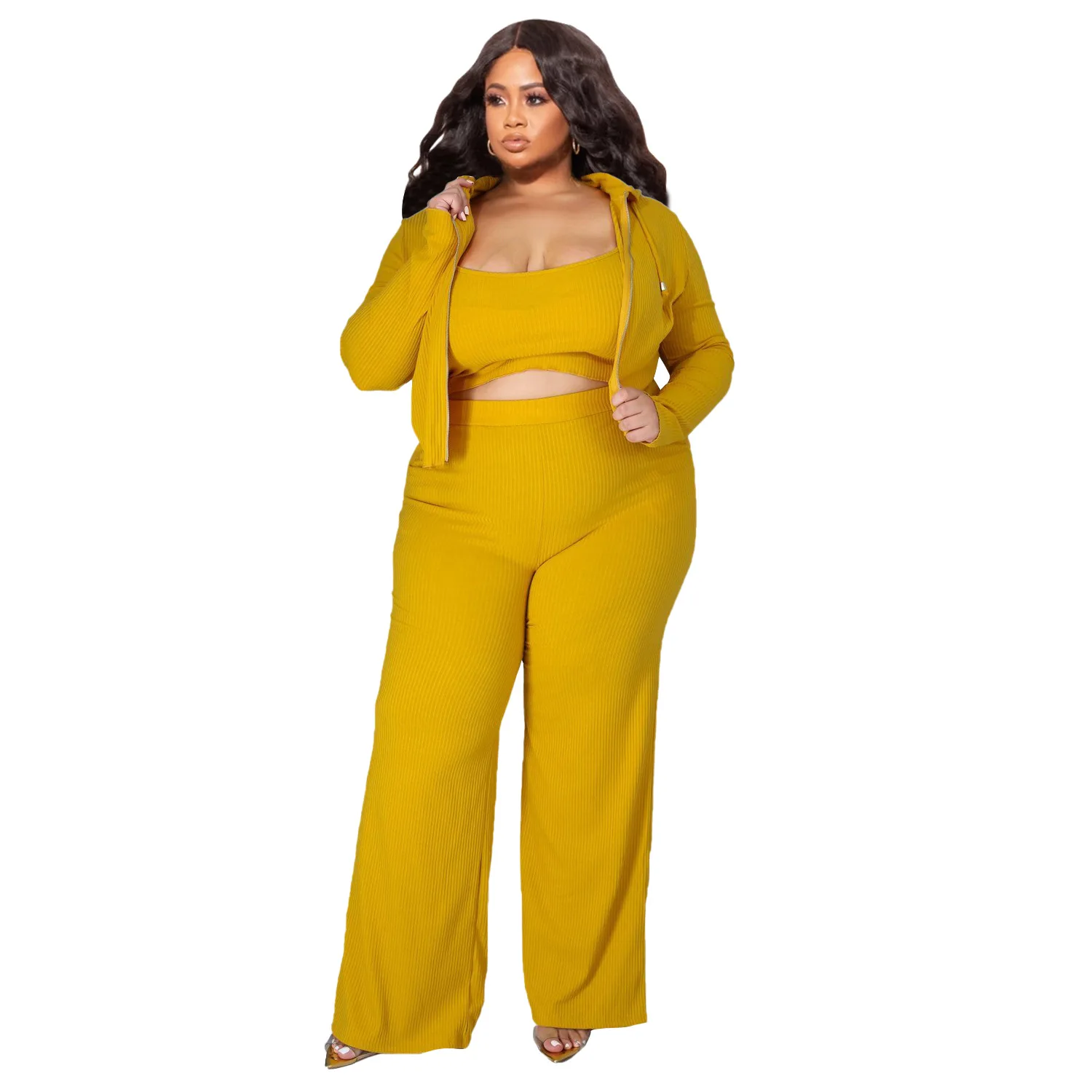 Plus Size Casual 3 Pieces Long Sleeve Zip Hooded Crop