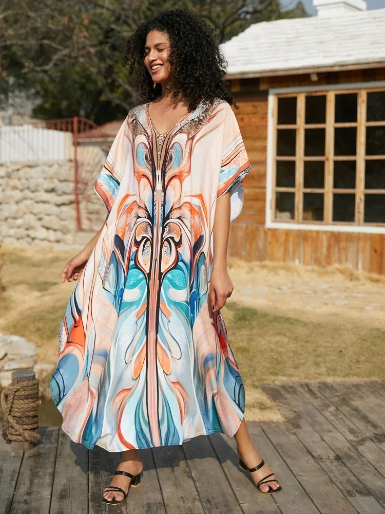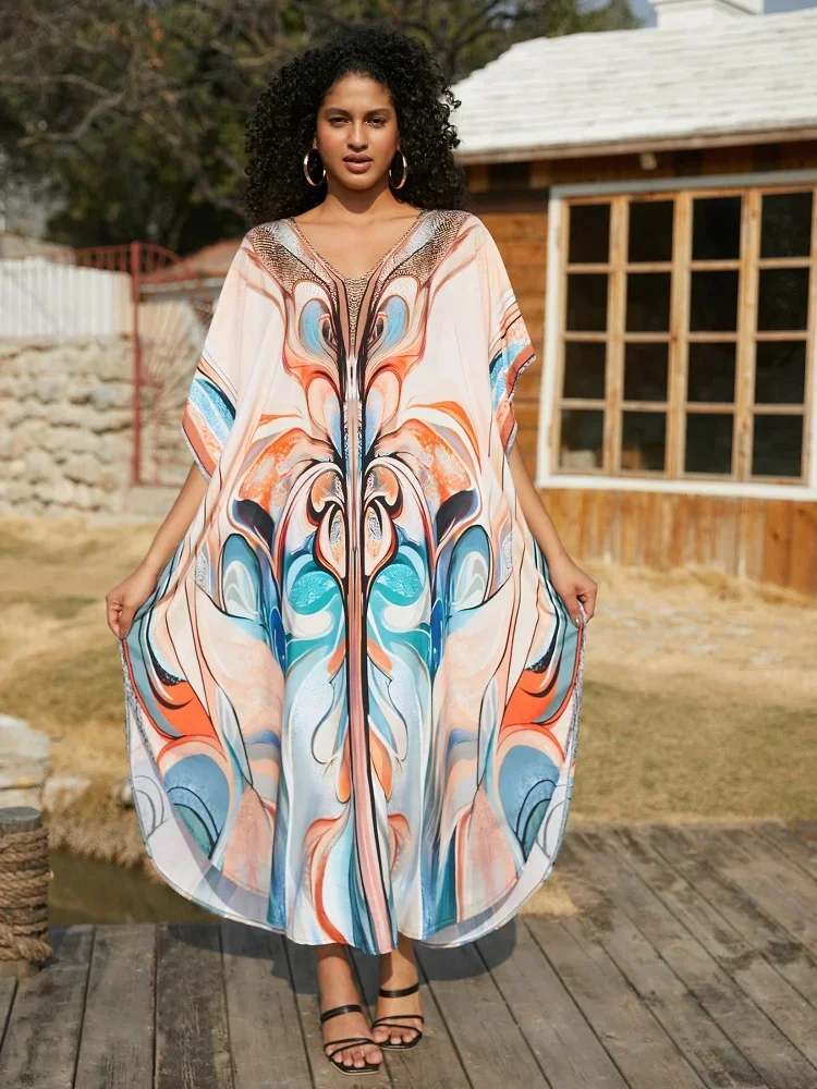 Sexy V-neck Batwing Sleeve Moo Moo Dress