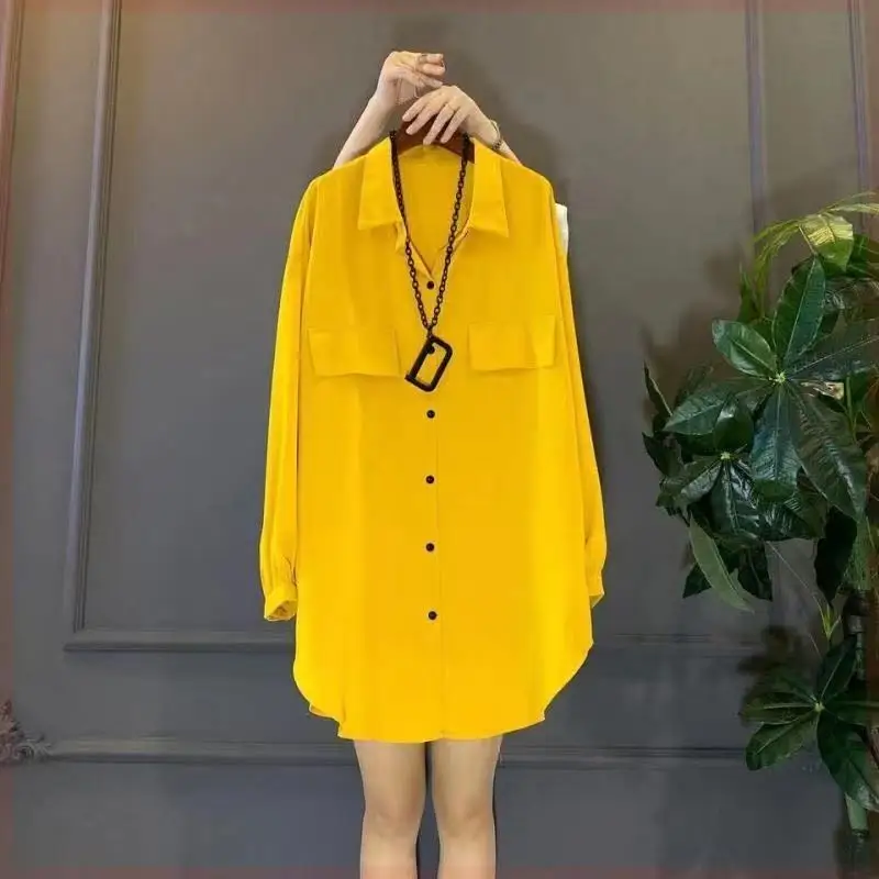 Plus Size Chiffon Loose Blouse Polo Neck Long Sleeve