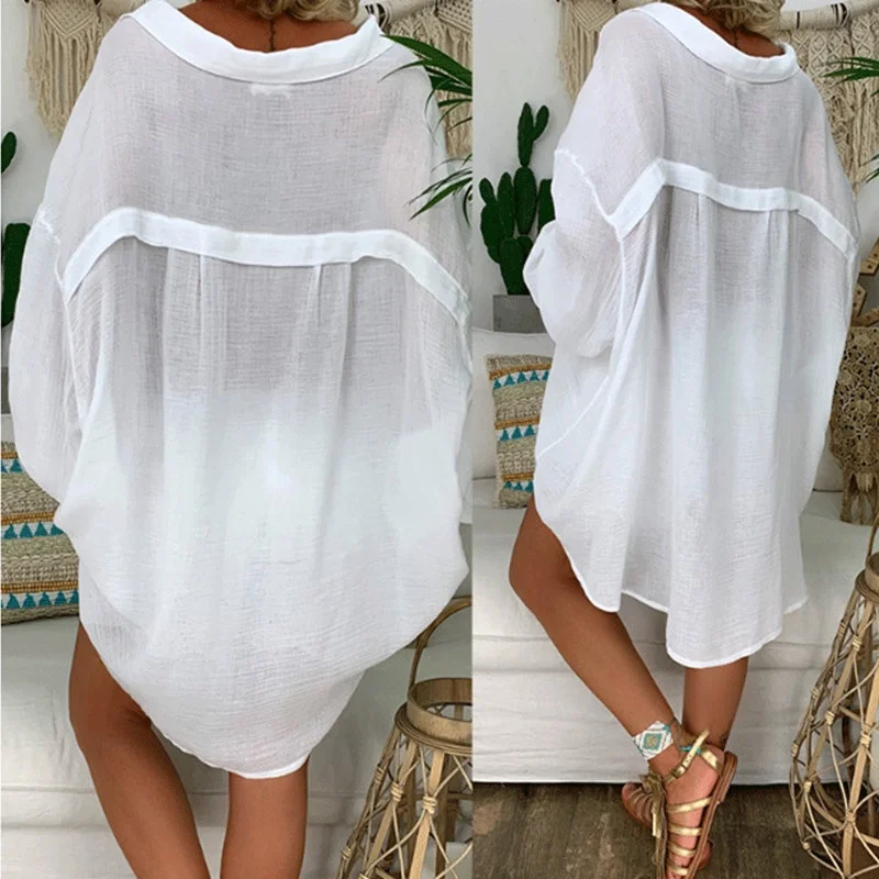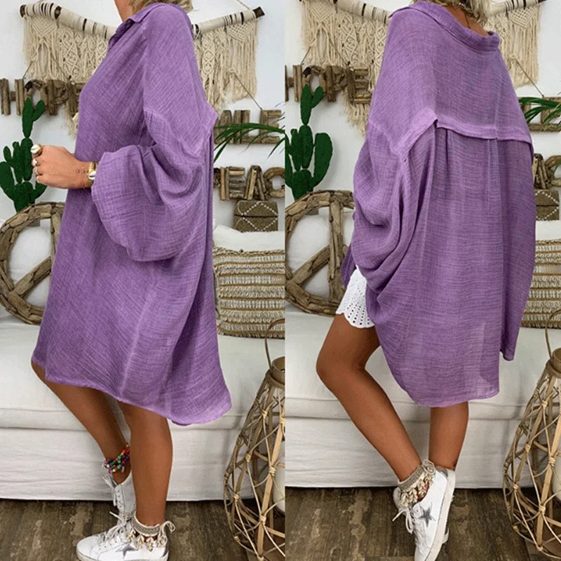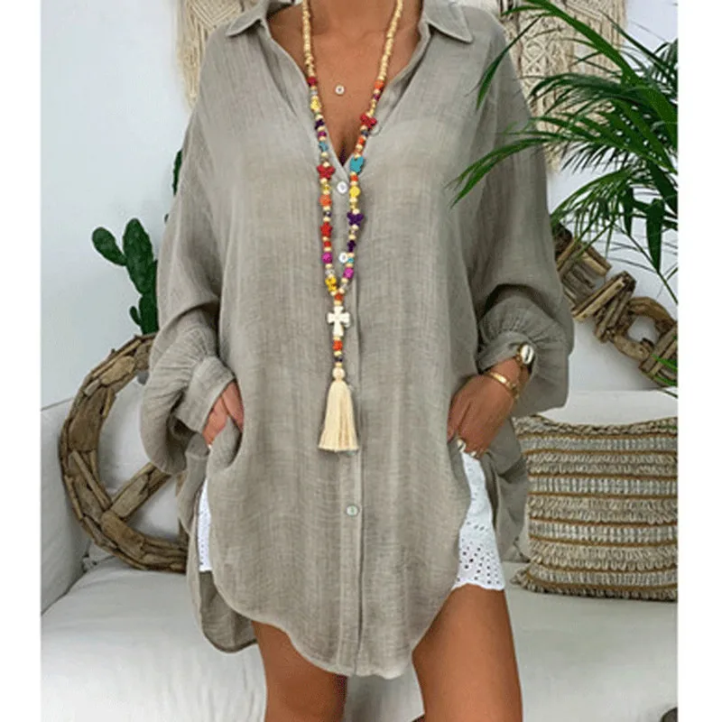 Plus Size Vintage Button-Down Shirt Loose Casual Long Sleeve Blouse